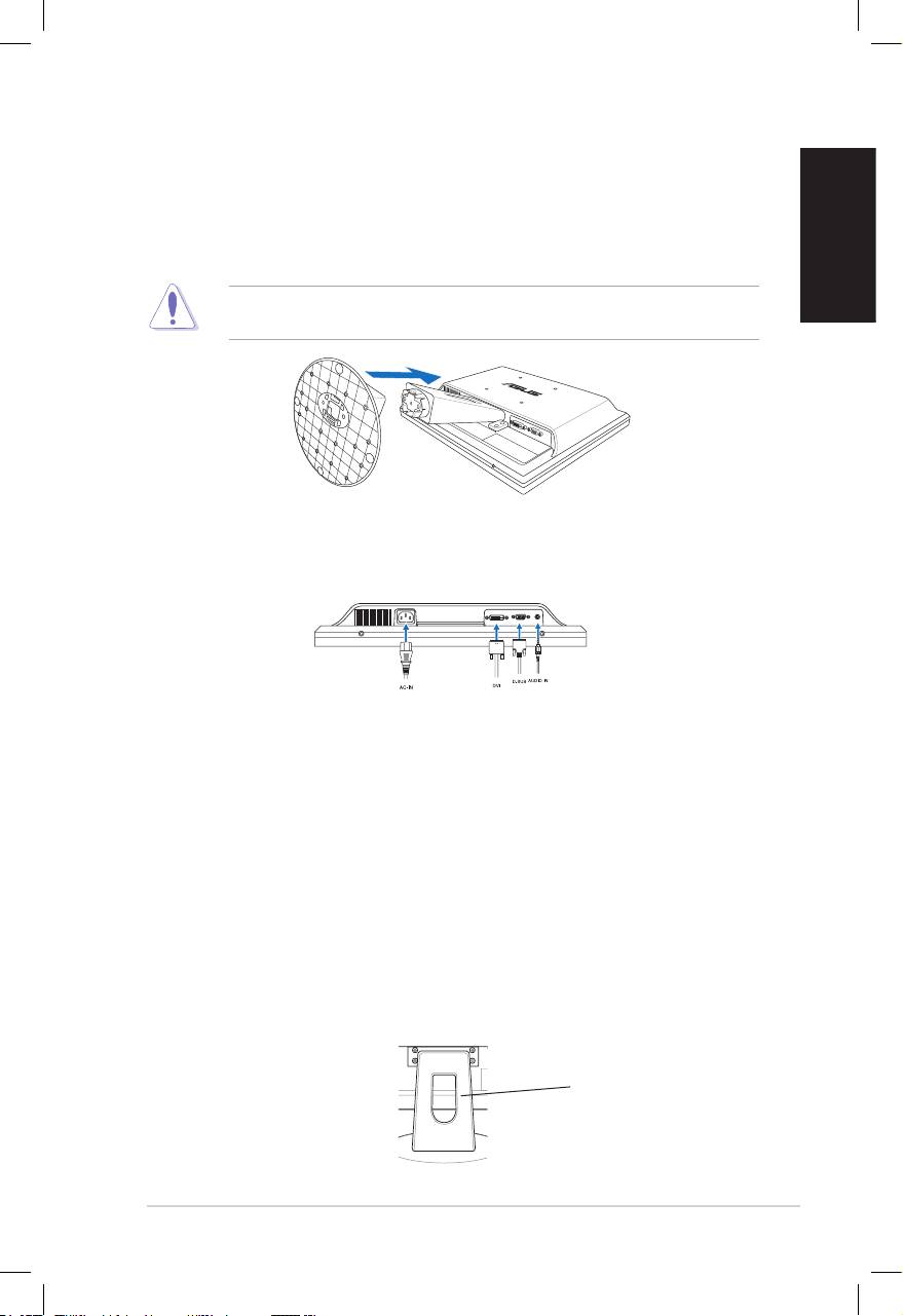 • Houd het voetstuk vast om te voorkomen dat de monitor valt wanneer u de