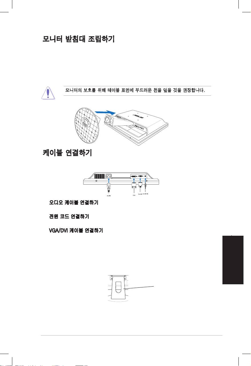 모니터의 보호를 위해 테이블 표면에 부드러운 천을 덮을 것을 권장합니다.