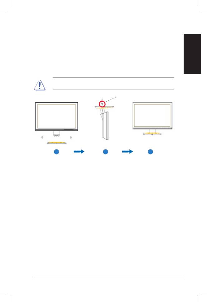 • Håll i stödet för att förhindra att bildskärmen faller när du ändrar dess