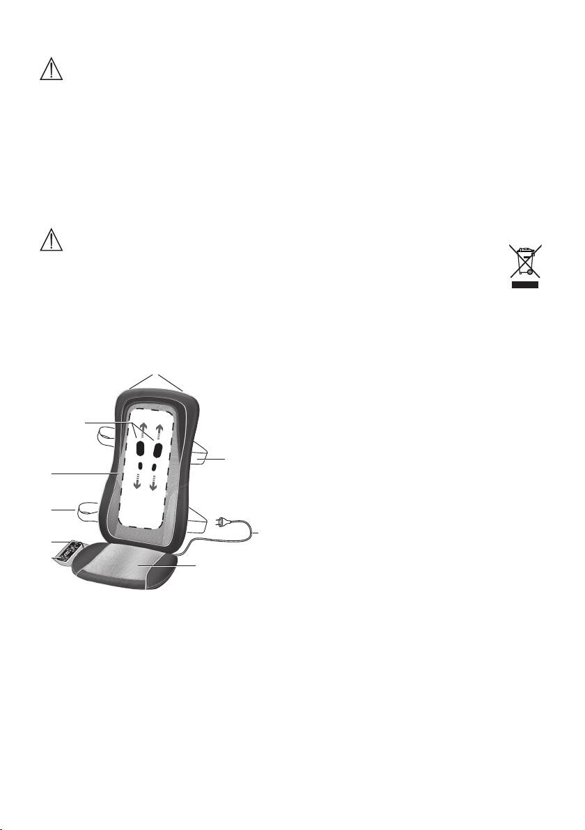 - Правила пользования Утилизация 5. Описание прибора Массажная накидка шиацу на сиденье (лицевая сторона)
