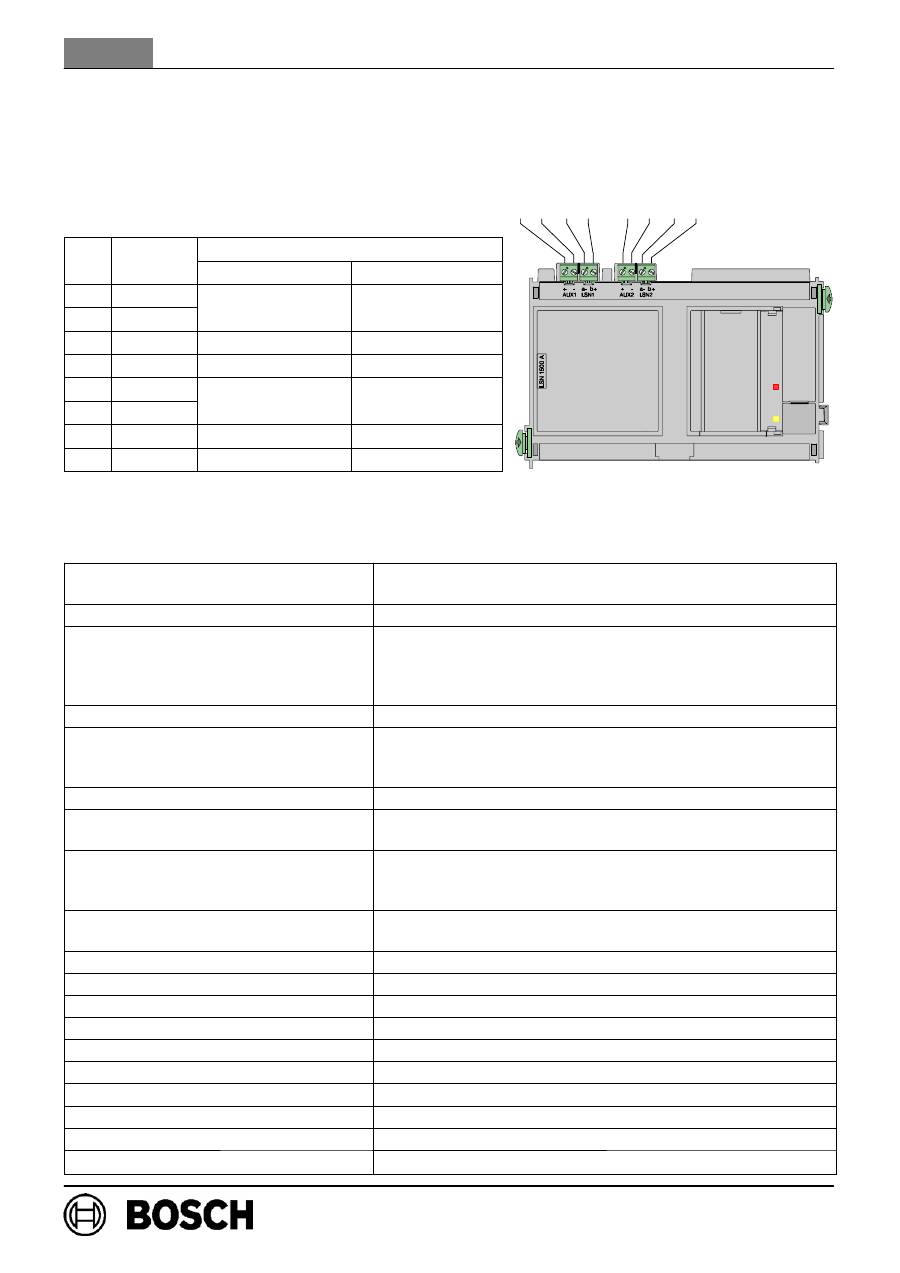 V DC Enimmäisvirrankulutus 4010 mA (24 VDC) Nimell. virrankulutus: - moduuli - LSN - AUX 260 mA (24 VDC) 1,7 x LSN-laitteiden virrankulutus 1,2 x AUX-lisäsyöttö Kaapelin pituus enint. 3000 m, kokoonpanon ja kaapelityypin mukaan LSN-laitteiden määrä enint. 127 perinteistä LSN-laitetta enint. 254 LSN