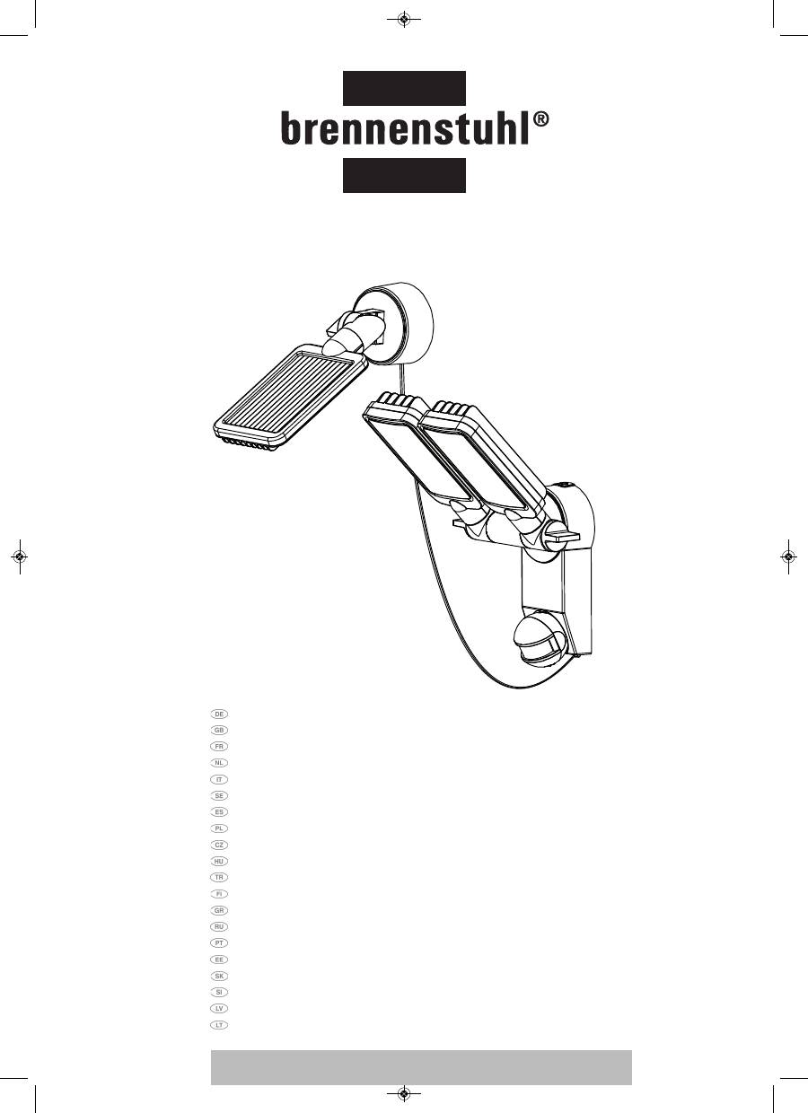 Инструкция к Brennenstuhl Solar LED-light Premium SOL LH0805 P2 IP44 with PIR sensor 8xLED 0,5W 320lm Cable length 4,75m Colour Anthracite