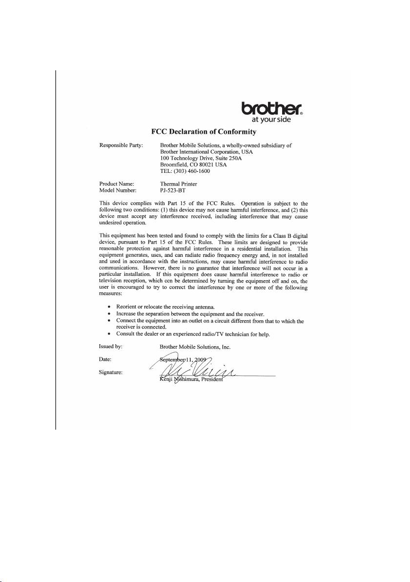 For PocketJet 3 Bluetooth units sold in the U.S.A., the following declaration of conformity