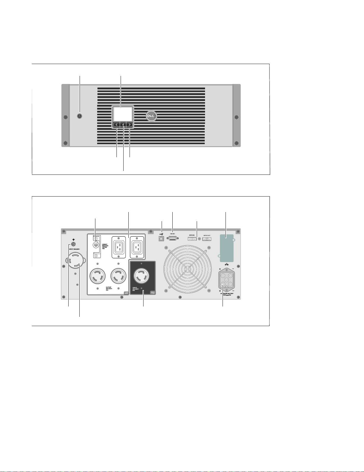 - Описание ИБП Рис. 1. Передняя панель ИБП Он-лайн блок Dell Рис. 2. 3750W, 208V Задняя панель