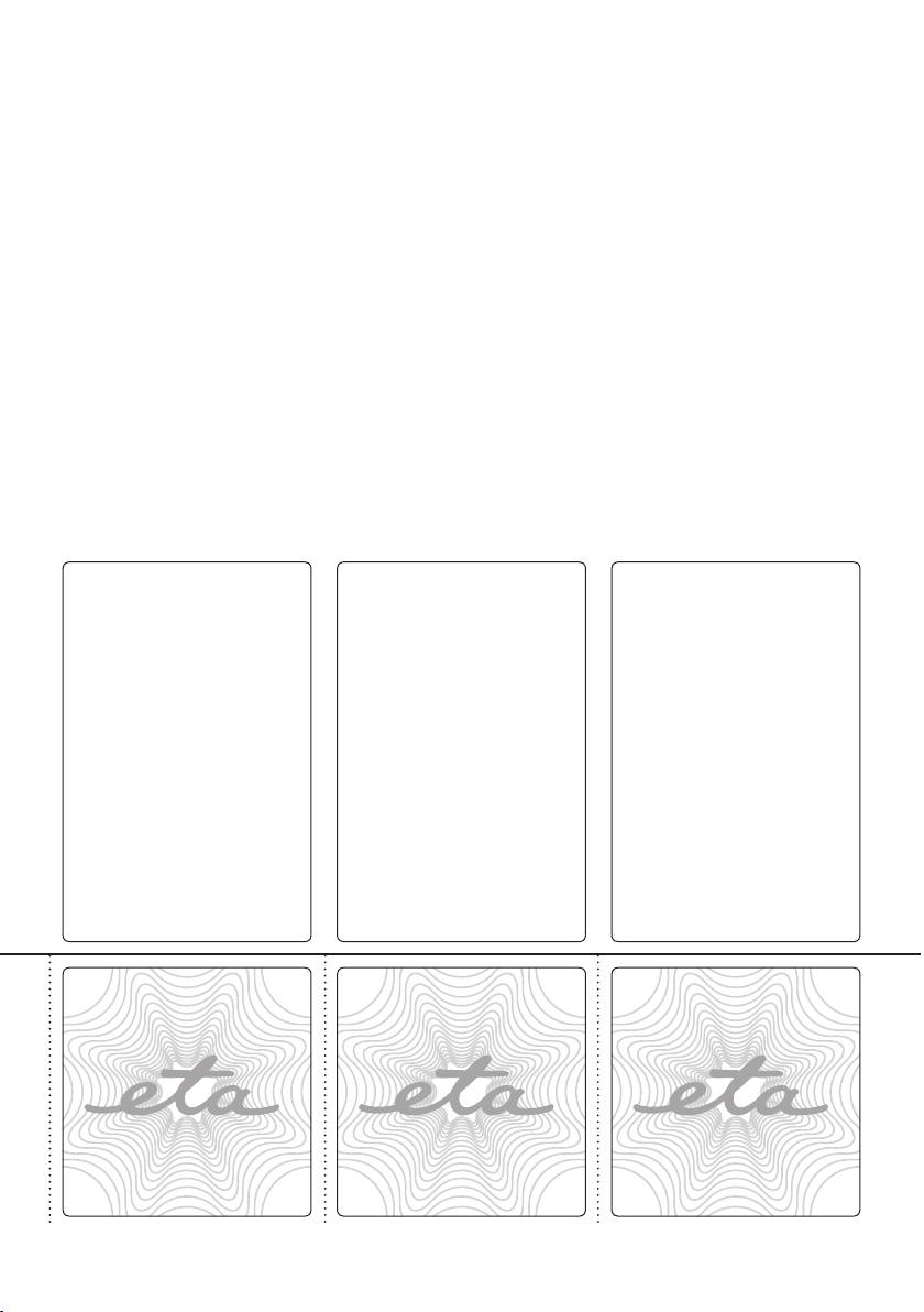 sa záruka nevzťahuje. Adresy záručných opravovní sú uvedené na internete www.eta.sk.