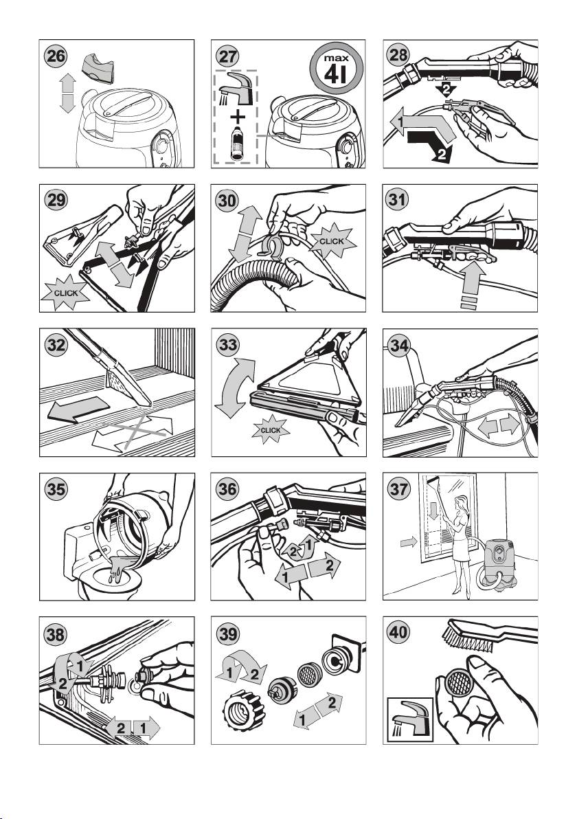prachového filtru dokonale vysušte nádobu vysavače, sací hadici a trubky.