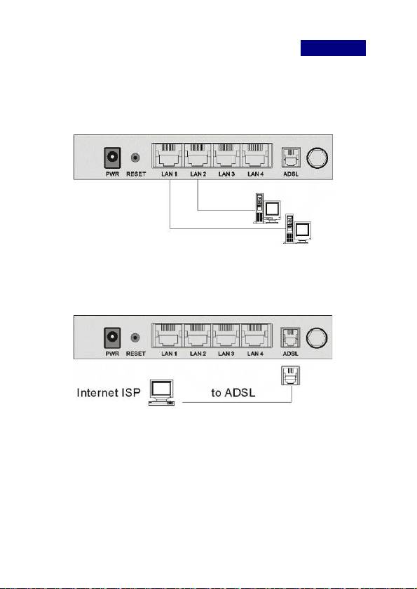 Ihres Computers mit dem LAN-Anschluss des ADSL2+ Routers.