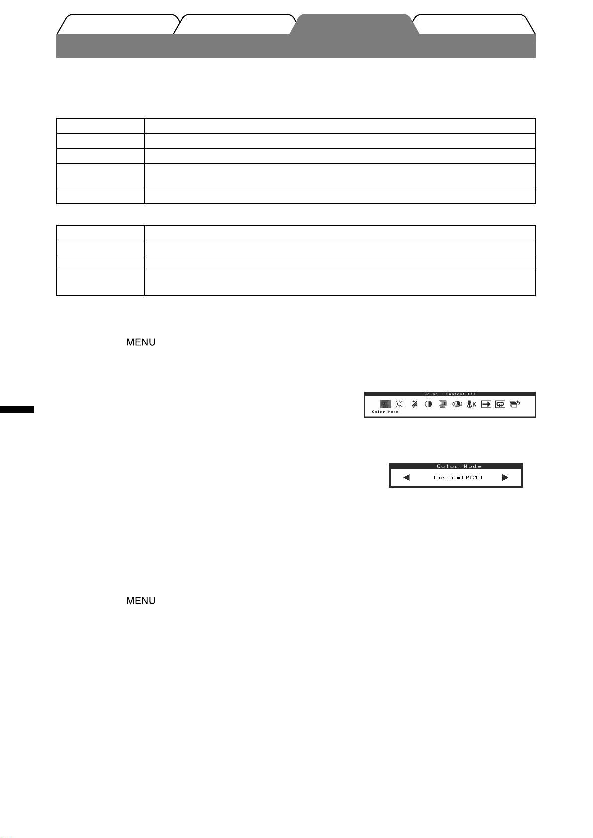 Menu Modalità Colore