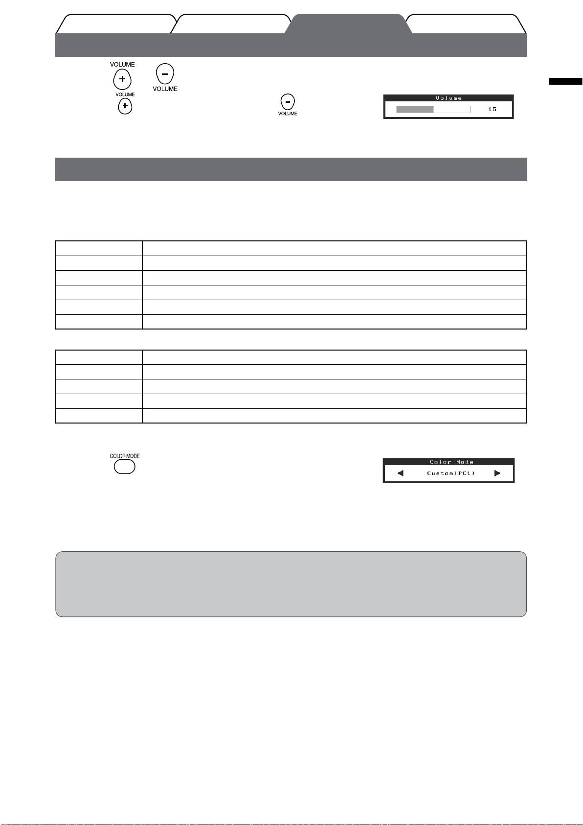 • Adjusting volume and changing color mode can be performed from the shortcut menu.