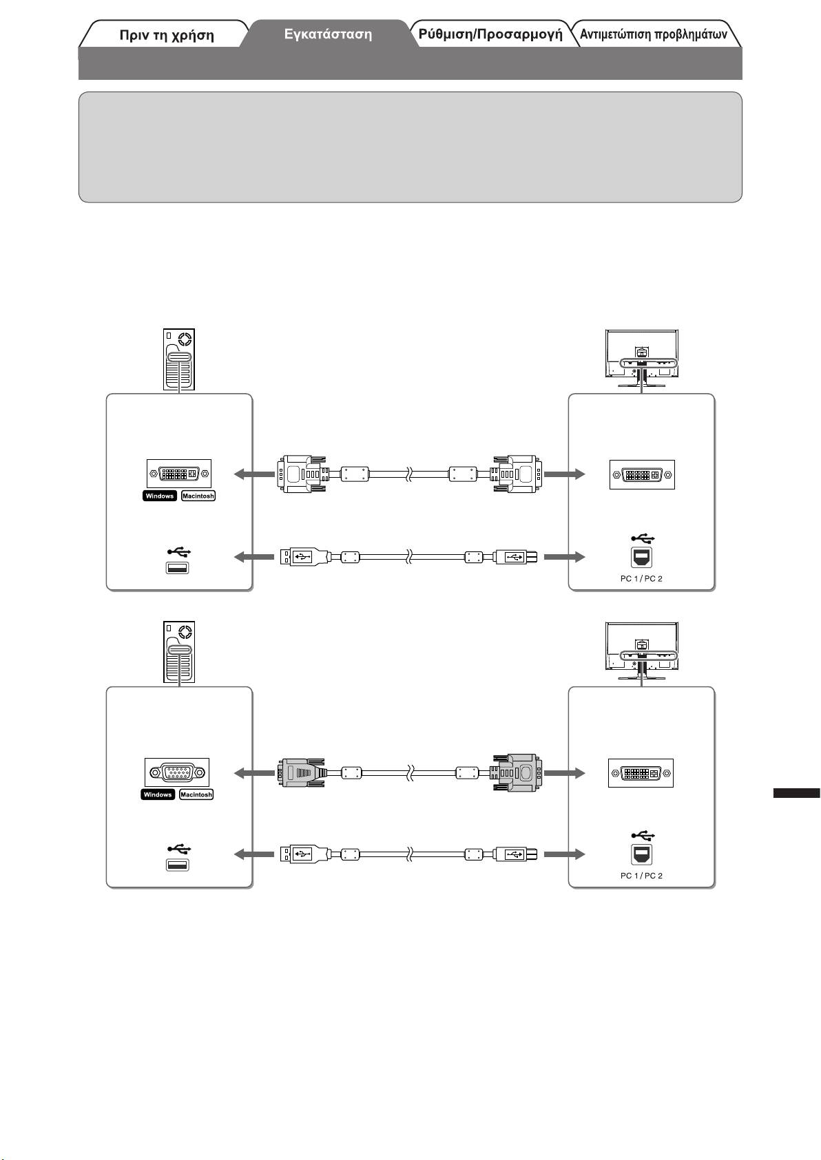 • Κατά τη σύνδεση δύο υπολογιστών στην οθόνη, ανατρέξτε στο εγχειρίδιο χρήσης στο EIZO LCD Utility Disk (CD-ROM).