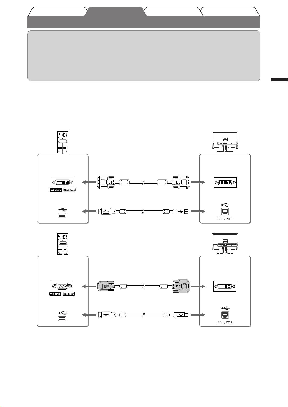 • Lesen Sie im Benutzerhandbuch auf der EIZO LCD Utility Disk (CD-ROM) nach, wenn Sie zwei PCs an den Monitor