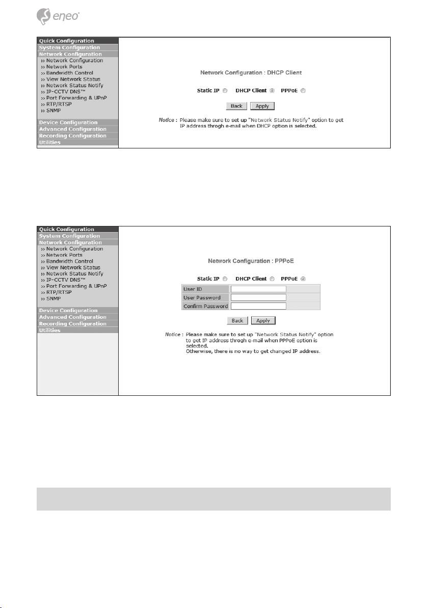 adres IP, klient DHCP lub PPPoE. Kamerę sieciową należy skonfi gurować