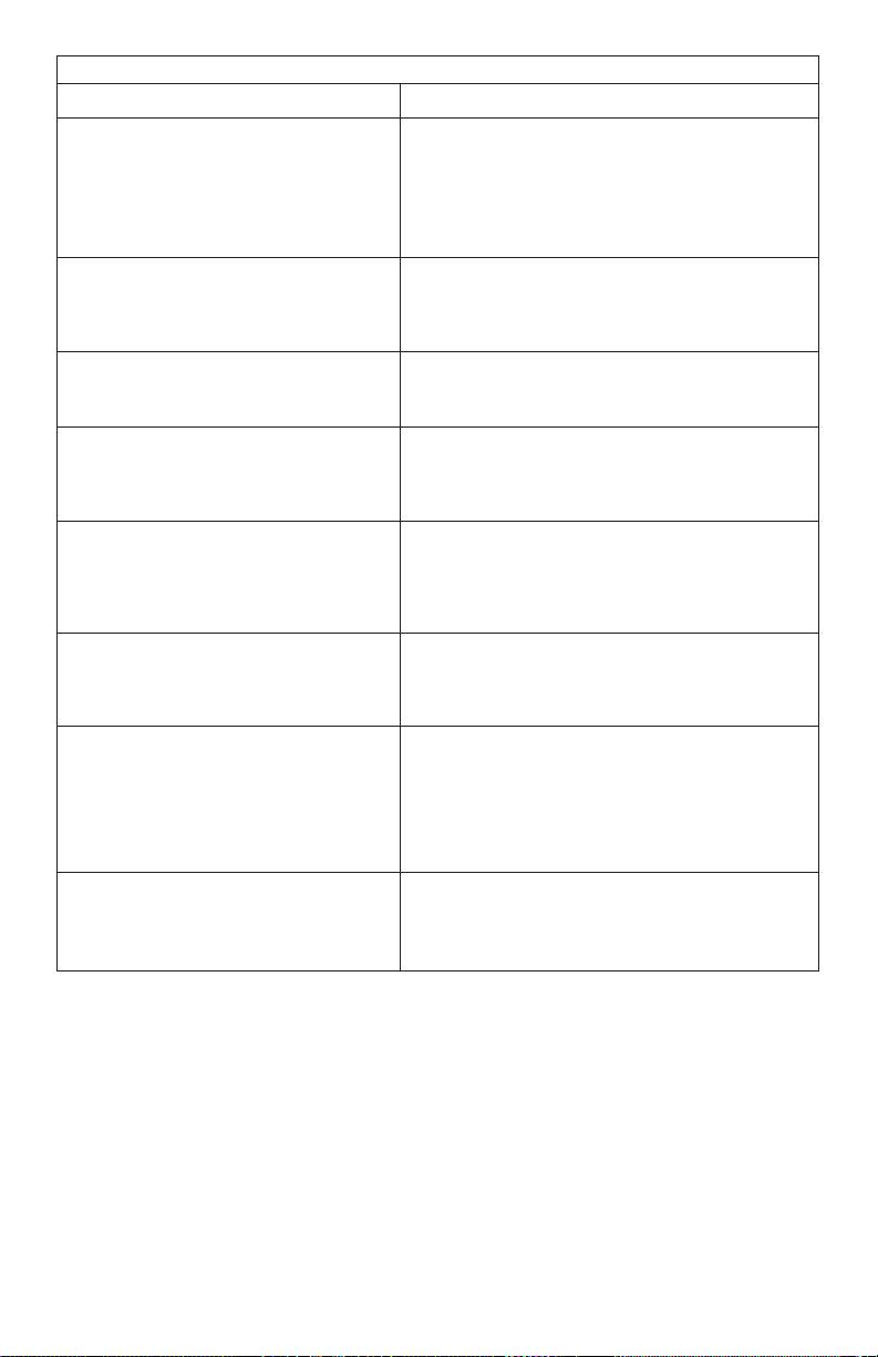 Felsökningstabellen är inte fullständig och ska endast