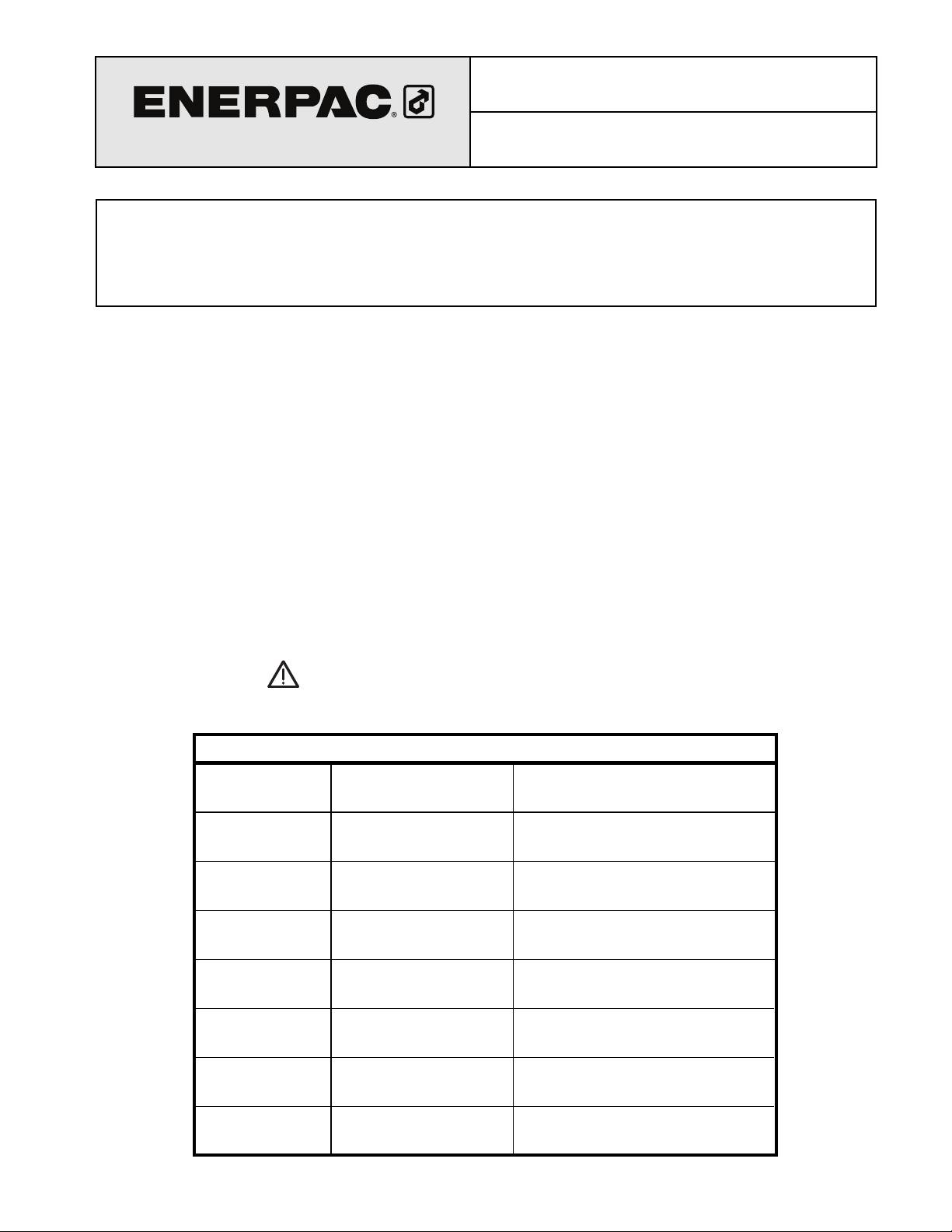 to each product. ENERPAC CANNOT BE RESPONSIBLE FOR DAMAGE