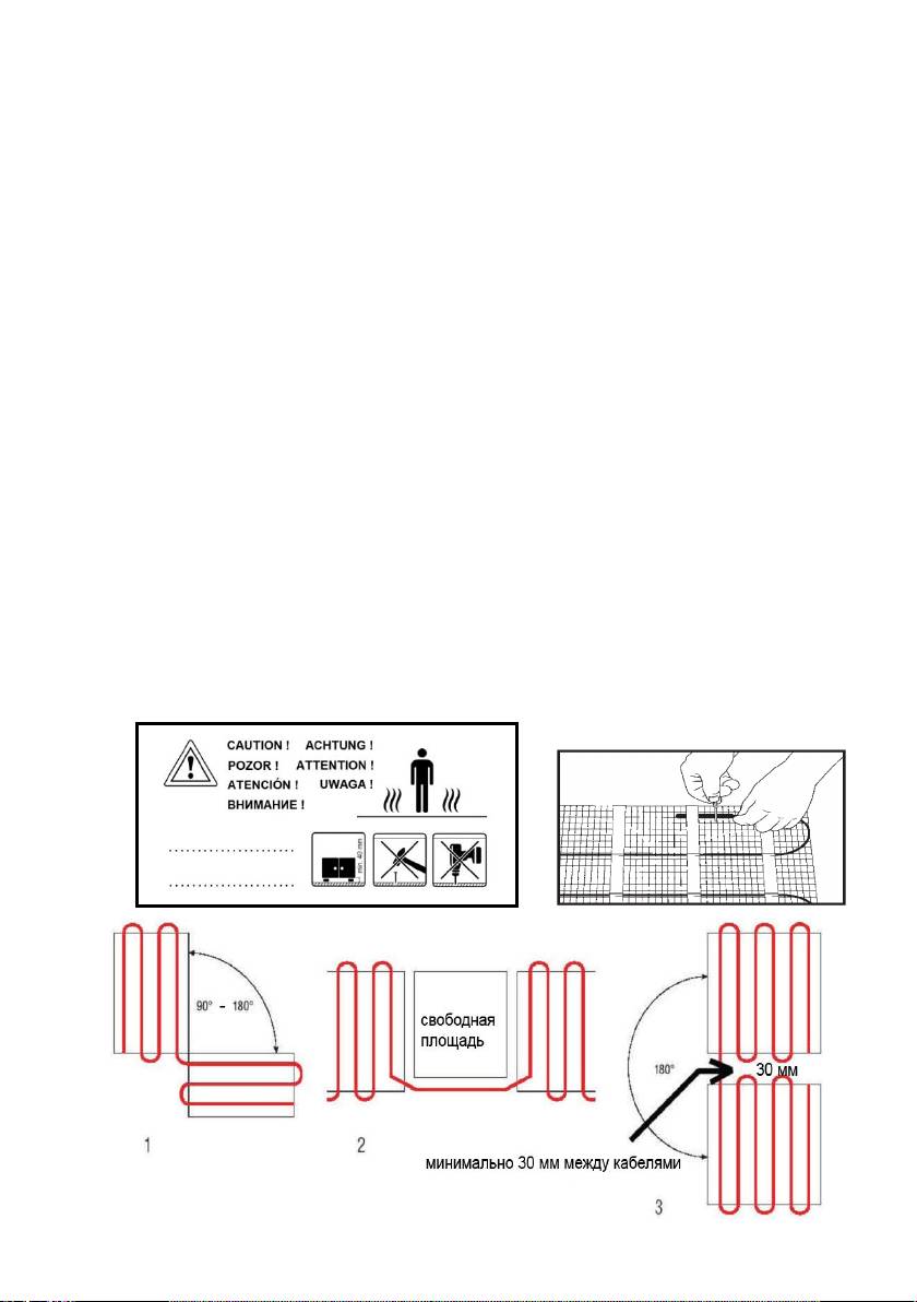 нагревательной части пола, на расстоянии как минимум 30см на нагревательной плоскости.