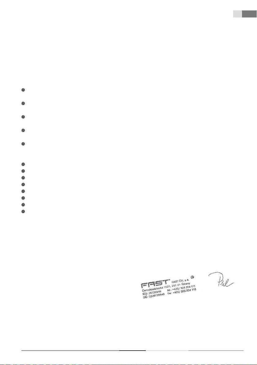 Společnost FAST ČR, a.s. je oprávněna jednat jménem výrobce.