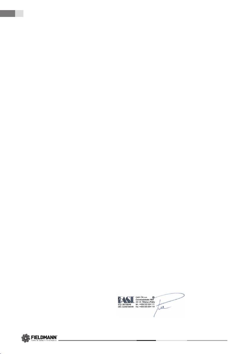 The company FAST ČR, a.s. is entitled to act on behalf of the manufacturer.