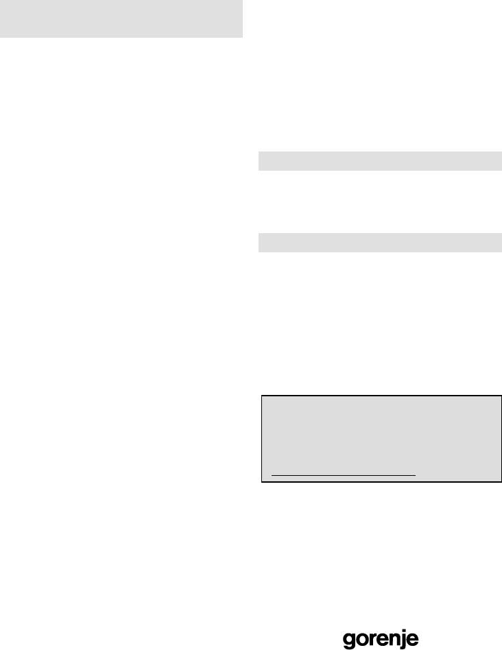country, go to your local Gorenje dealer or