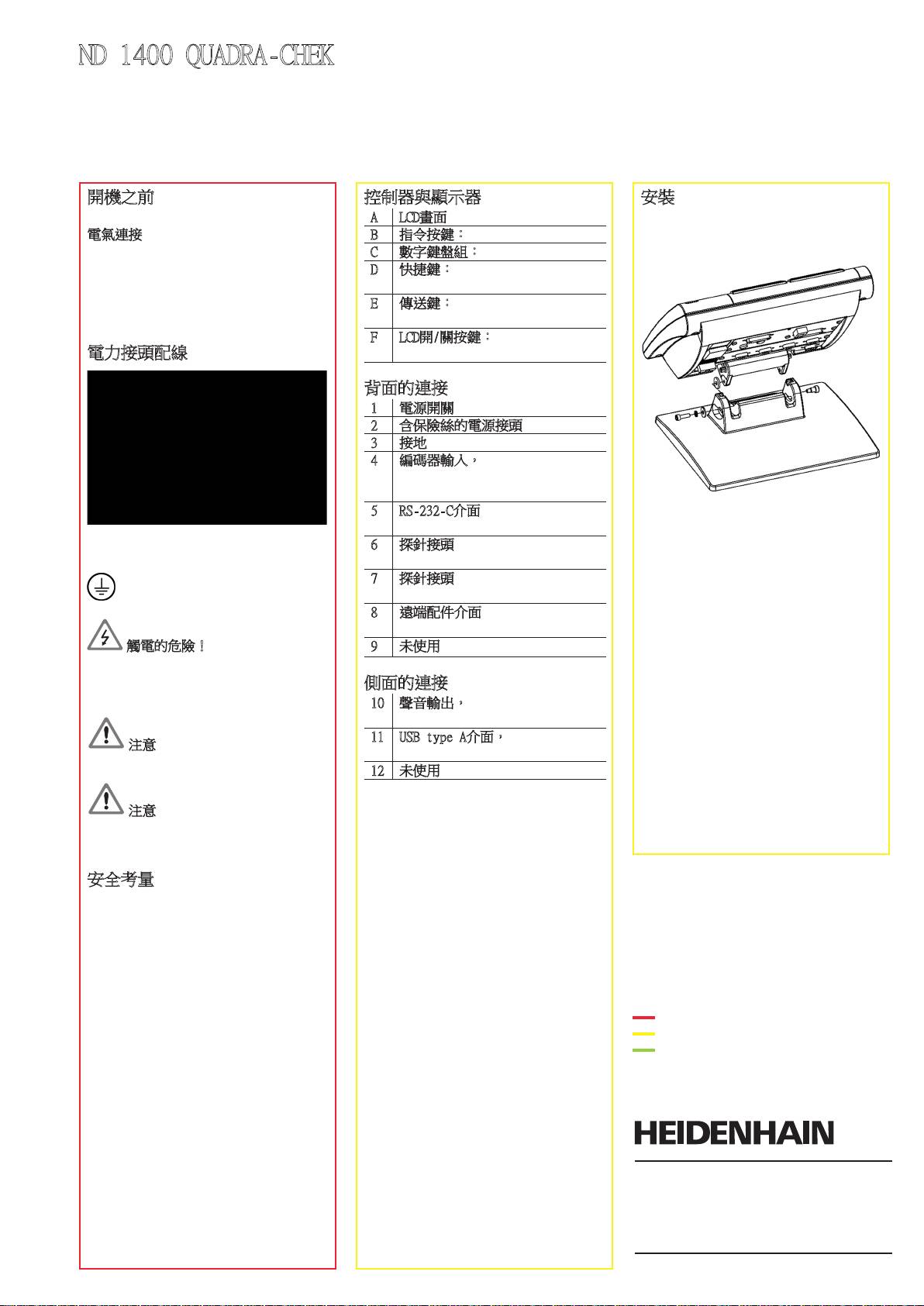 ND 1400 QUADRA-CHEK : HEIDENHAIN ND 1400 Quick Start