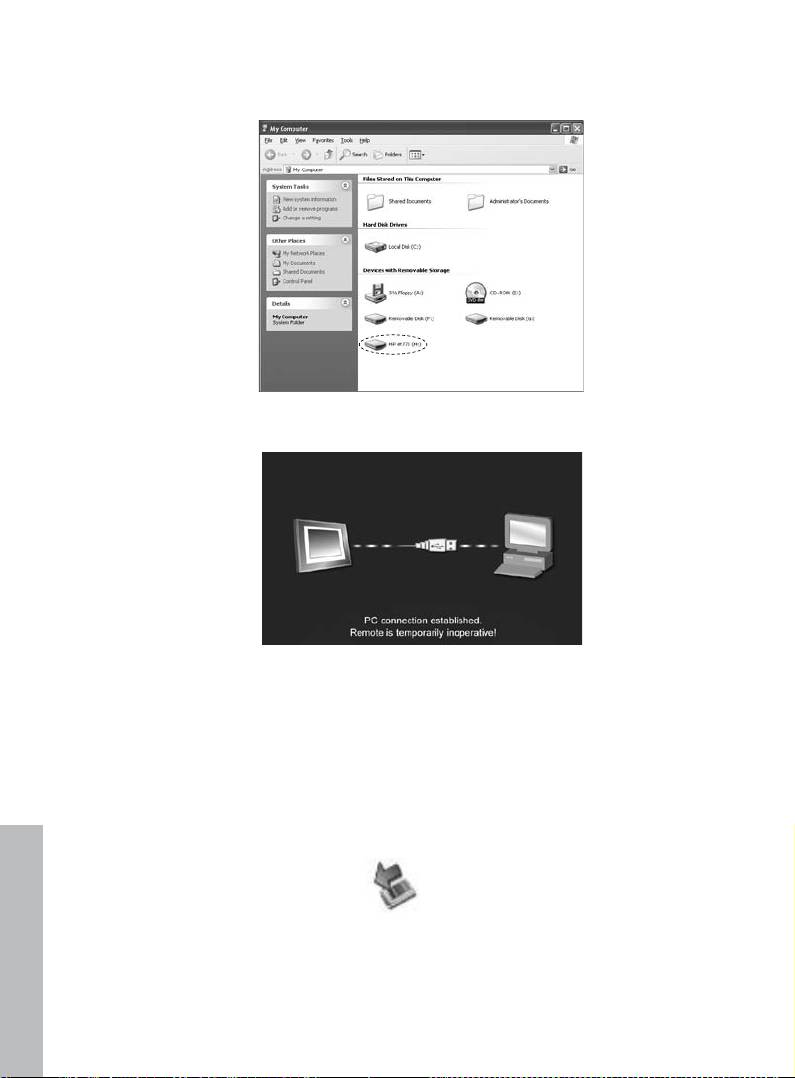 如果同前述複製相片 - 從個人電腦/筆記型電腦之章節說明,相框連接到個人電腦
