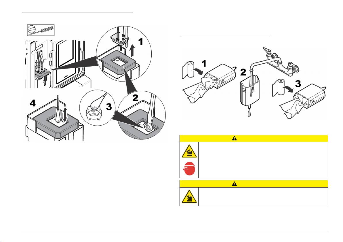 Vzorčno kiveto po potrebi očistite v kolorimetru. Glejte Slika 1 in Slika 2.