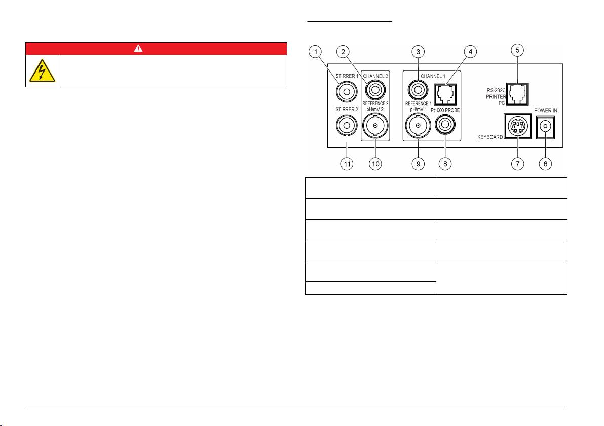 Anslutningar 2 kombinerade eller indikatorelektrod: BNC-