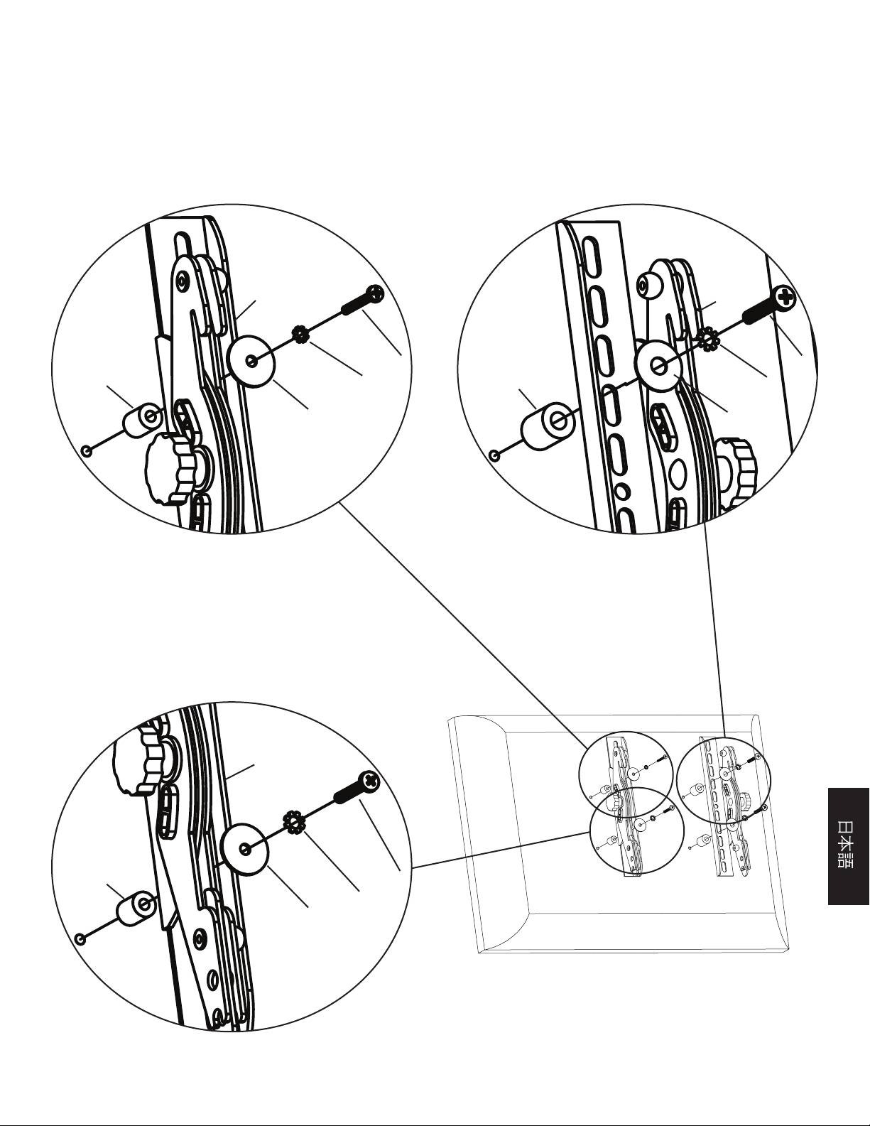 の設置業者にお問い合わせください。Sanus では、テレビを取り付けるのに必要な金具をすべてお届けするよう最大の努力をしております。必要