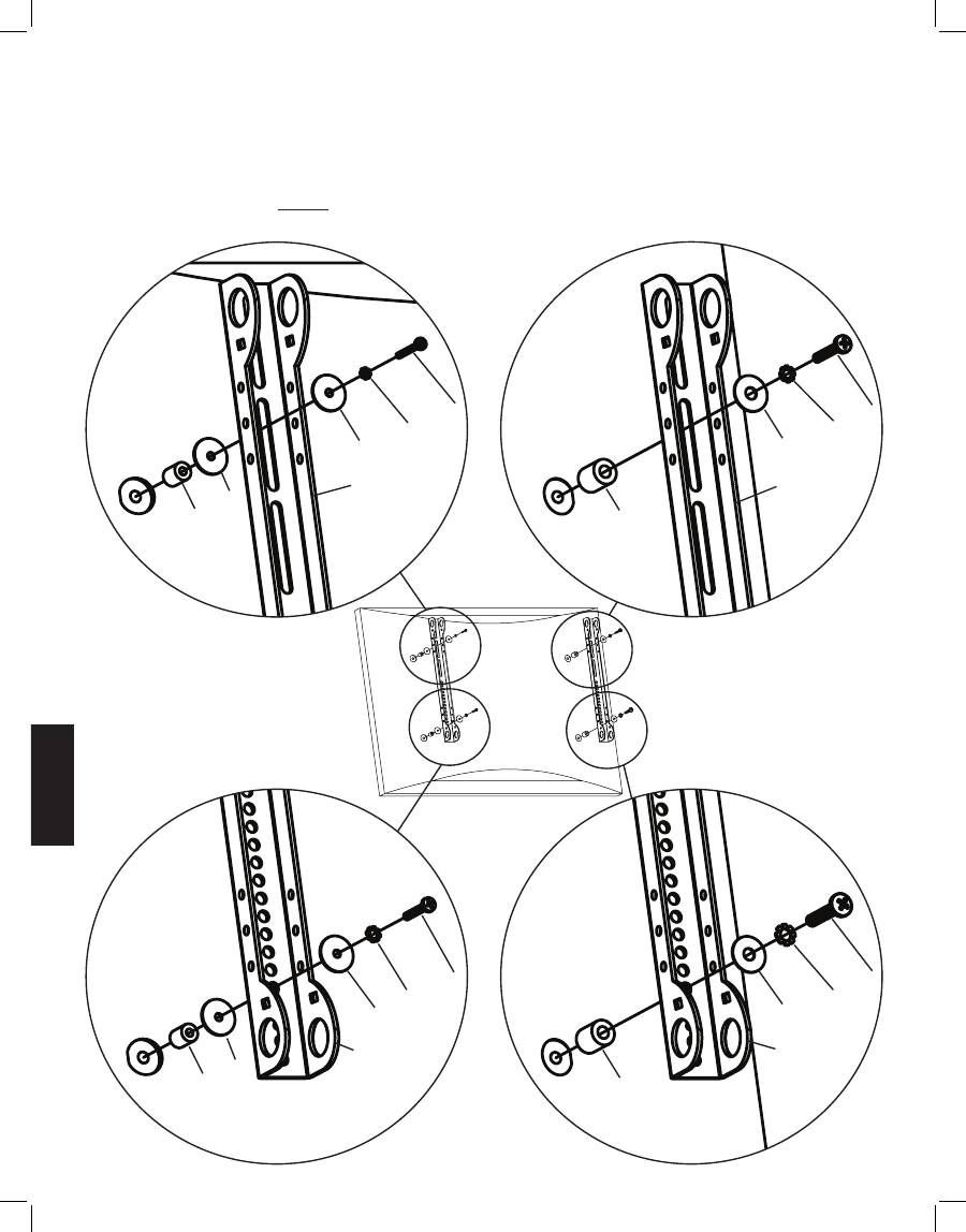 вертикали. Следует закрепить каждую крепежную скобу для монитора на задней панели телевизора посредством двух винтов.