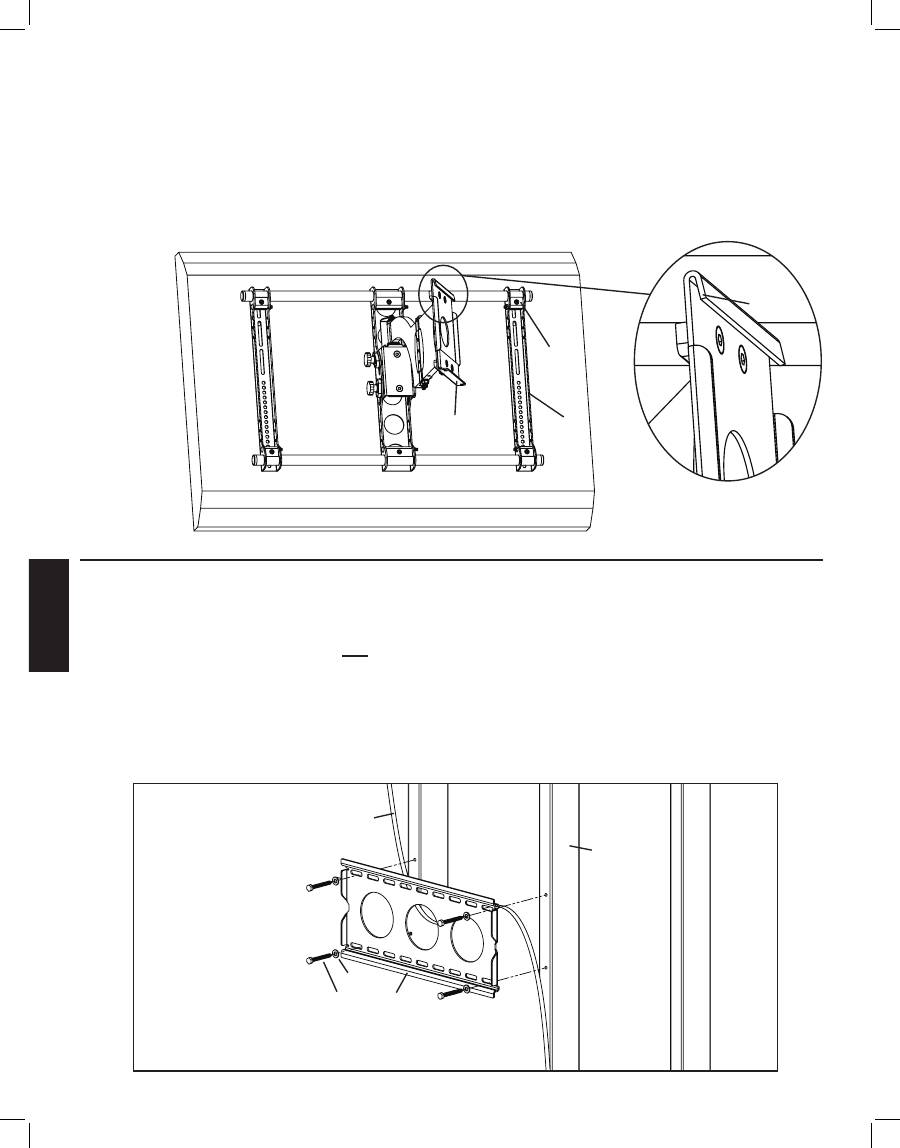 livello l’una con l’altra. Ripetere il processo fino a quando ogni staffa per monitor viene fissata alla TV con 2 bulloni.