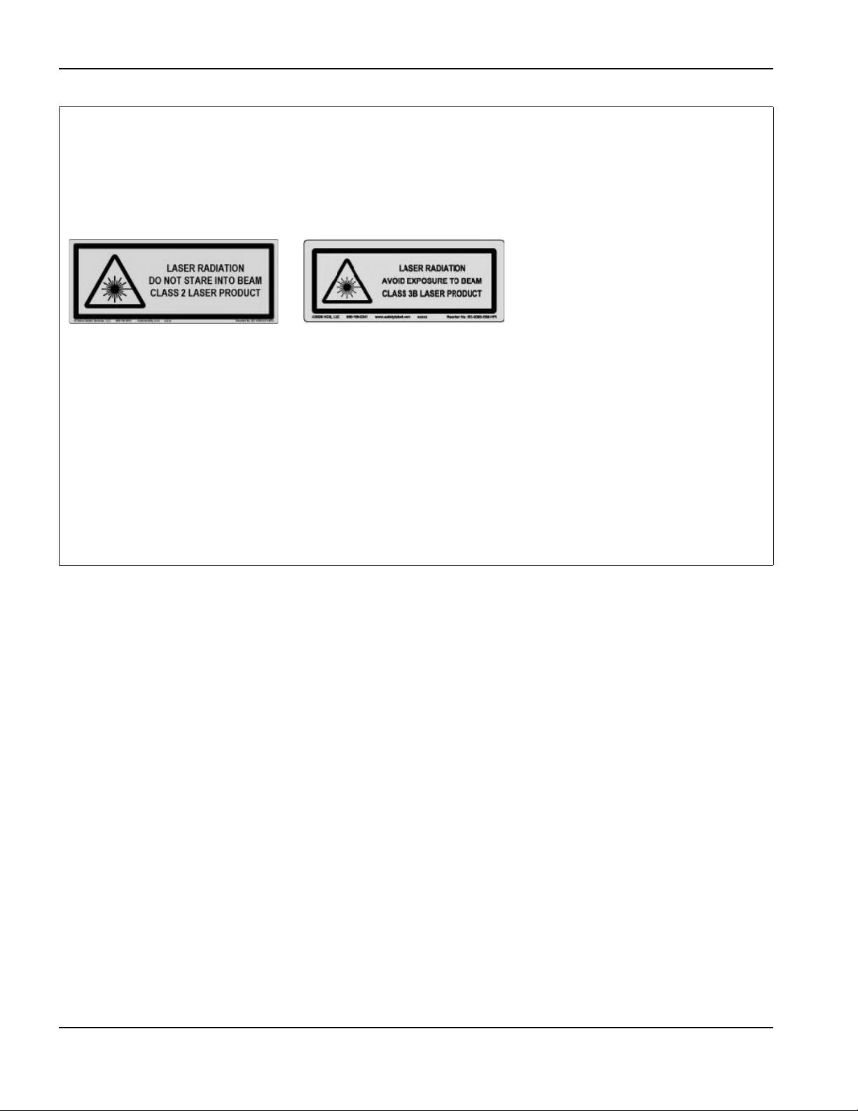 Az igazításhoz lézermutatót használó termékeken a következő lézersugárzásra figyelmeztető címkék egyike található ott, ahol a lézerfény kilép