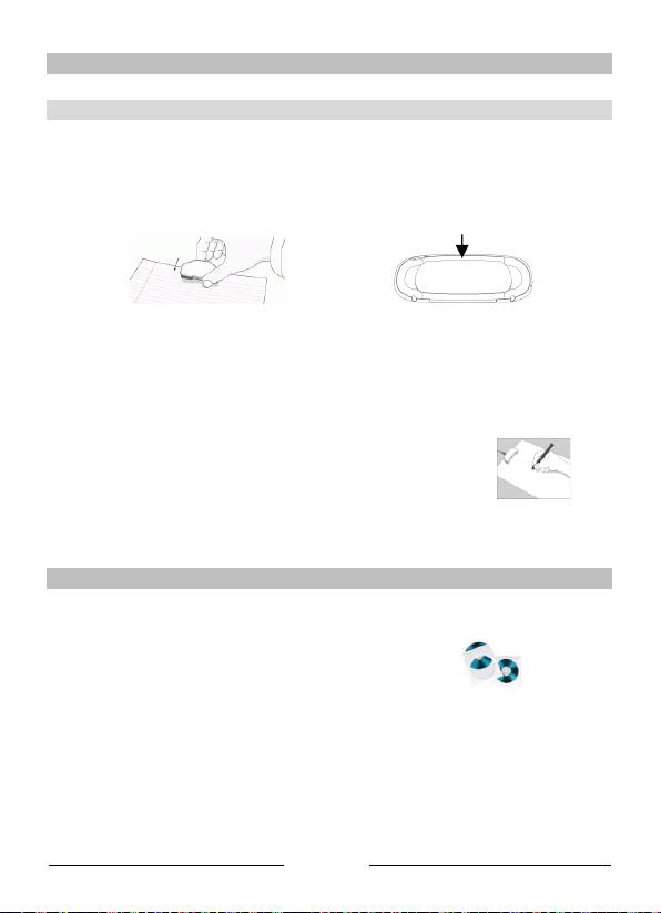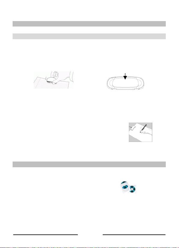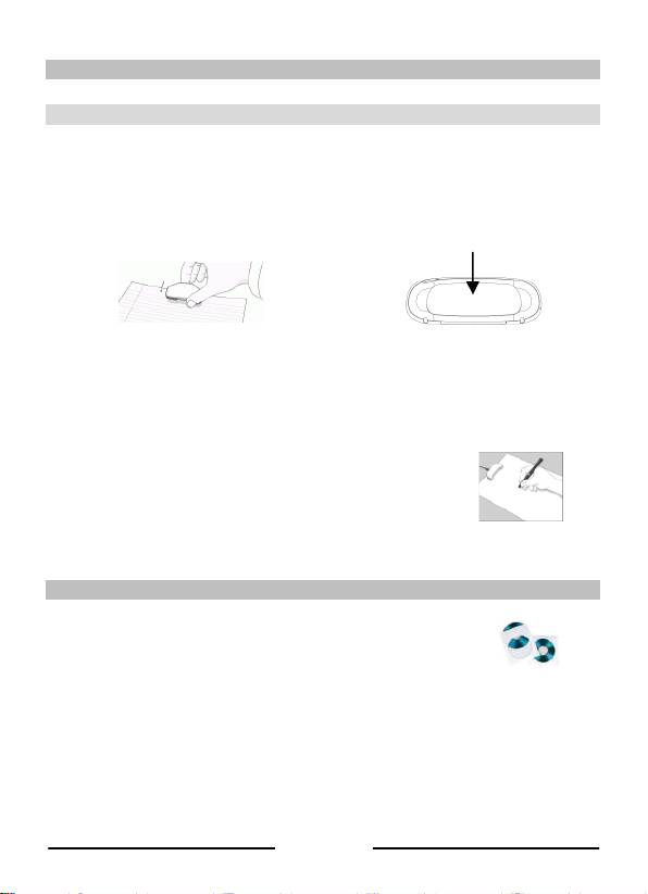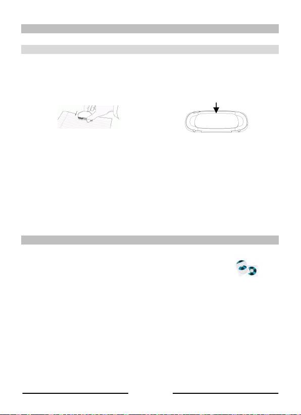 Legen Sie den Empfänger mittig an den oberen Rand des A4-Blattes. Schalten Sie ihn ein, indem