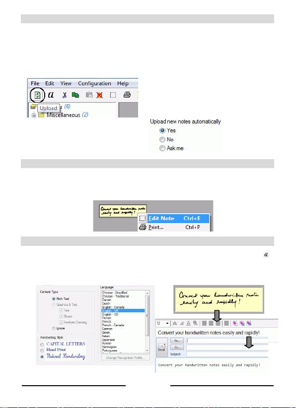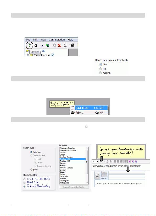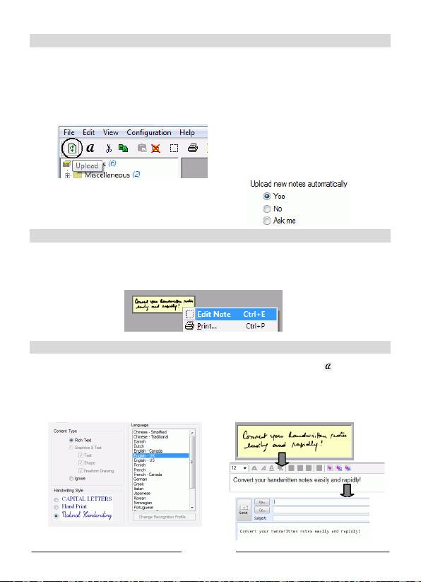 Einstellungen zum Hochl aden Ihrer Notizen