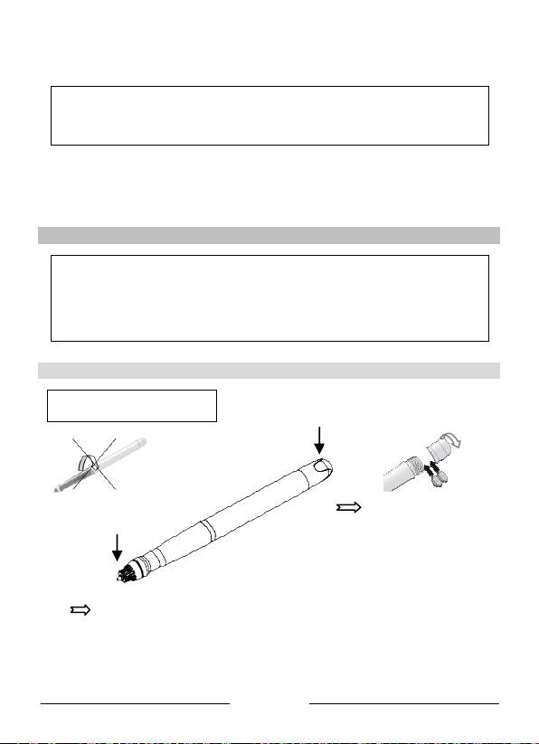 ! Mantenha os dedos afastados do cone de cristal da ponta da caneta!