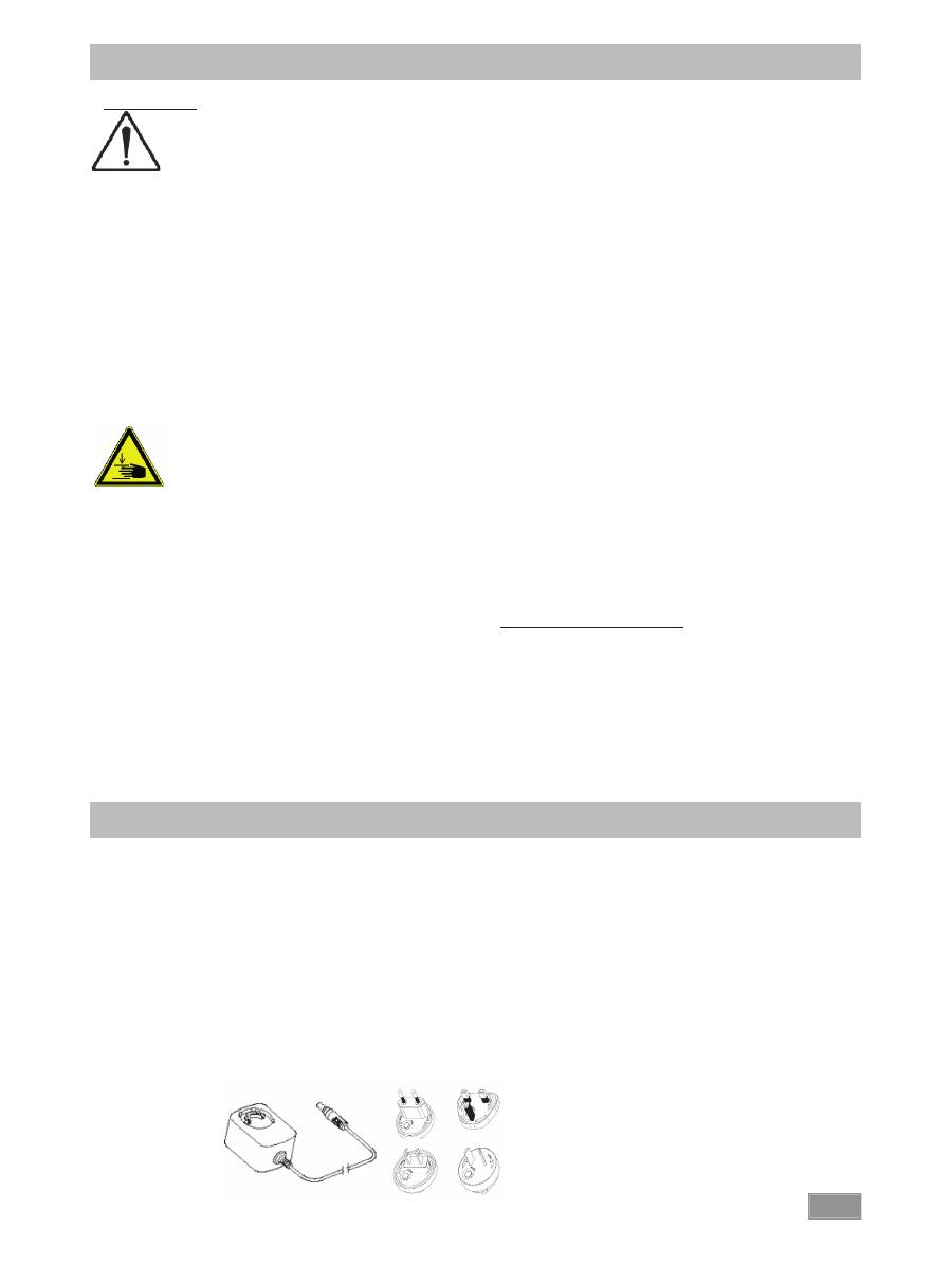 • L'appareil ne doit être utilisé qu'avec l'alimentateur d'origine.