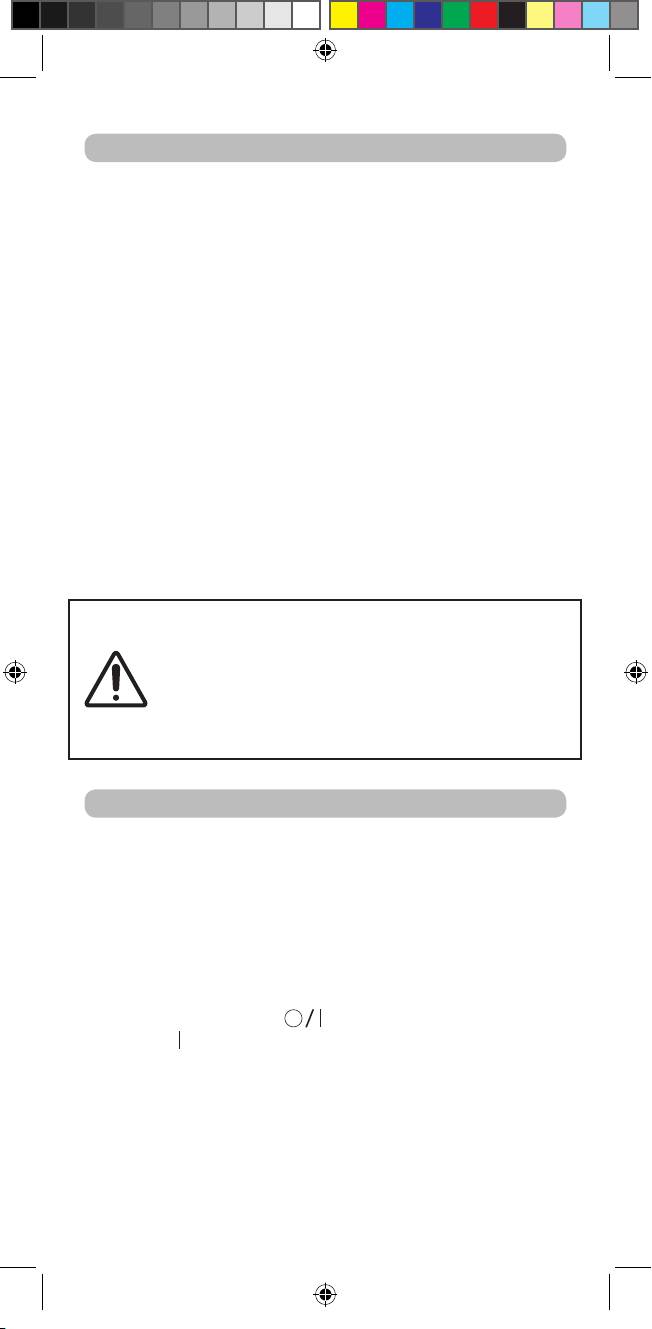 - • Ezen készüléket 8 éven felüliek, csökkent szellemi, zikai képességekkel rendelkező személyek ill. megfelelő jártassággal nem rendelkezők csak abban az esetben használhatják, ha a készülék használatát megelőzően megfelelő információval látták el őket a készülék biztonságos használatáról és a készülék használatával járó veszélyekről. Ügyeljen, hogy gyermekek ne játsszanak a készülékkel. Gyermekek a készülék tisztítását és karbantartását csak felnőtt felügyelete mellett végezhetik. • Ha a készüléket a fürdőszobában használja, a használat után mindig húzza ki a dugót az aljzatból, mivel a víz közelsége kikapcsolt készülék mellett is veszélyforrást jelent. • Nagyobb fokú védelem biztosítása érdekében ajánlatos a fürdőszoba energiaellátását biztosító elektromos hálózatra egy dierenciálvédelmi egységet