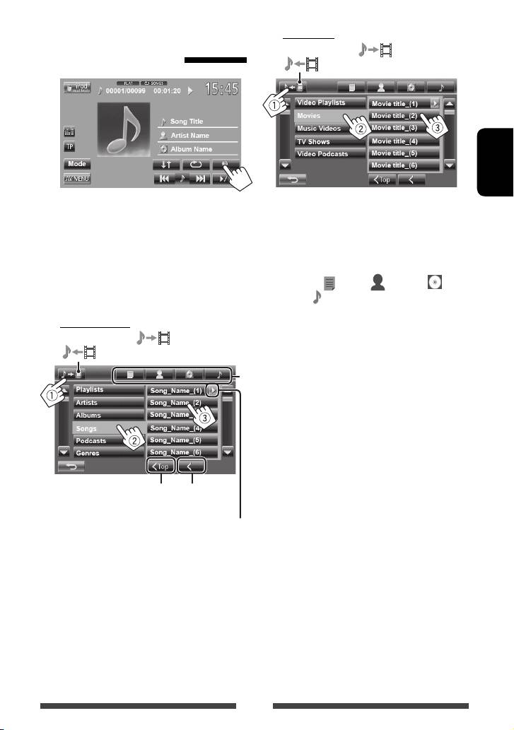 ♦ iPod : Selecciónelo cuando se conecta un iPod/iPhone con el