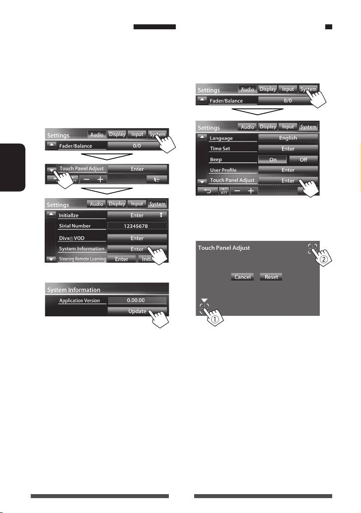 Регулировка позиции касания кнопок на экране. (☞ cтр. 50)