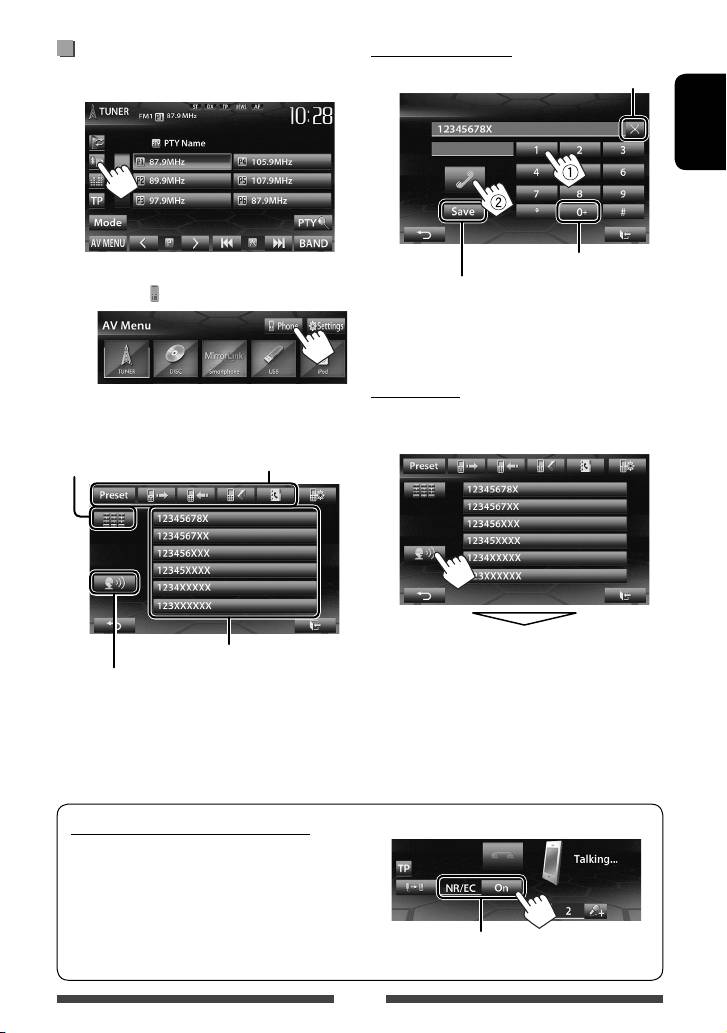 • For Bluetooth mobile phone: Phone setting