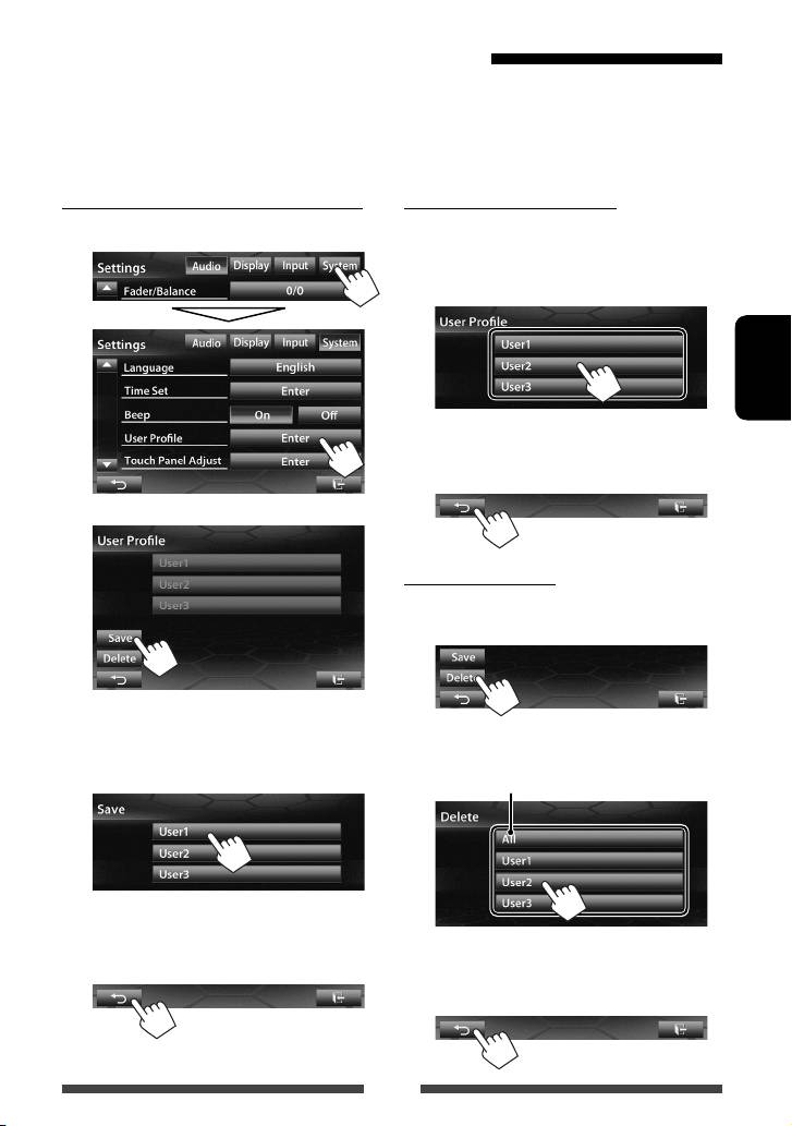 User Profile Вы можете сохранять в памяти, вызывать из памяти или очищать