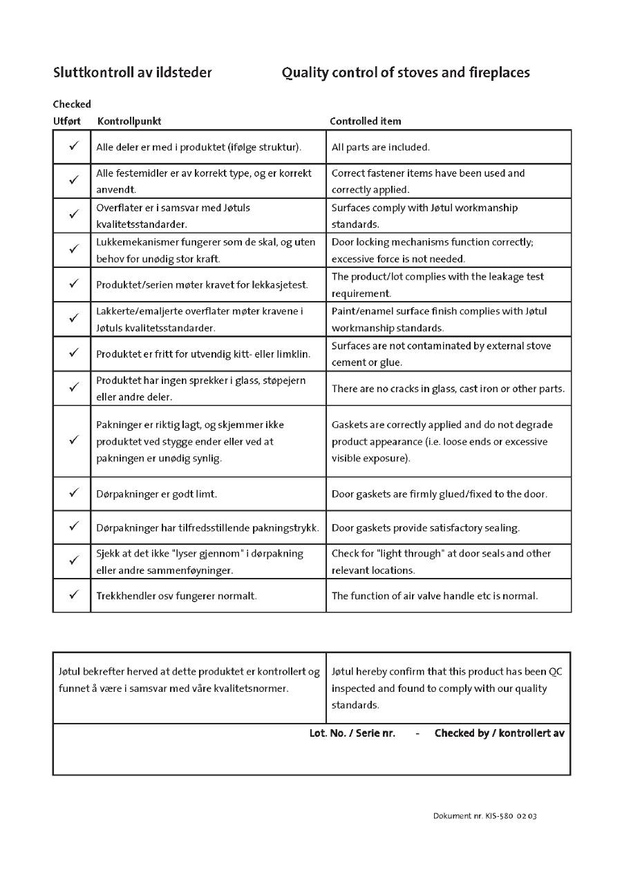 Le système de contrôle de la qualité de Jøtul AS est conforme à la norme NS-EN ISO 9001