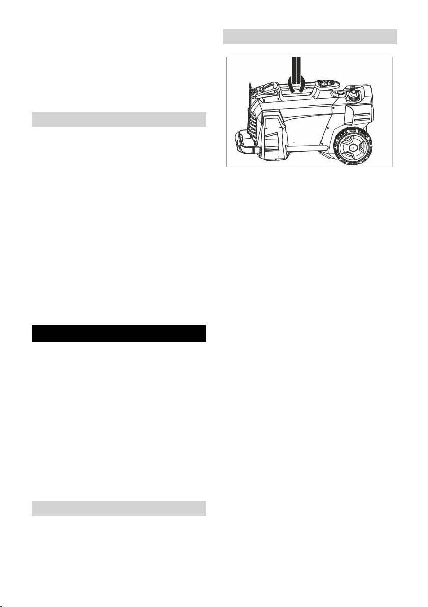 – Løft maskinen kun i håndtaket.
