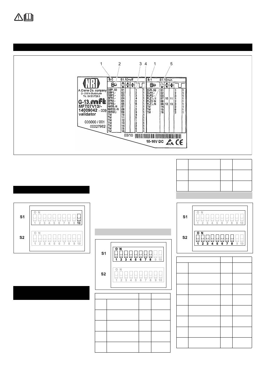 - Tabliczka identyfikacyjna Wybór bloku zbiornikaBlokada kana ł u monet