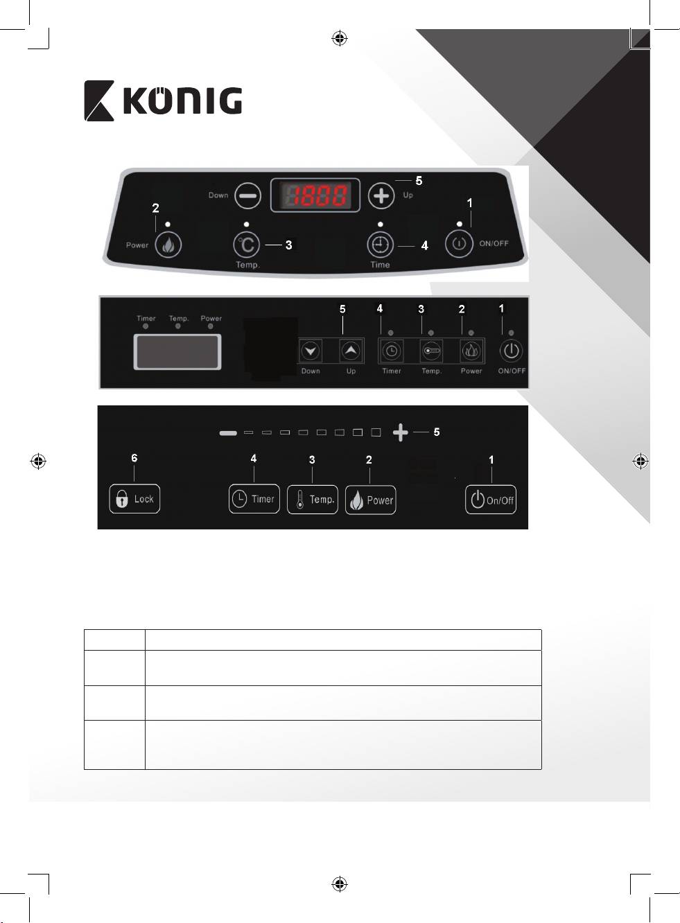 3) Strøm: I standby tilstand, tryk på knappen ”Power” (2). Komfuret er klar til brug.