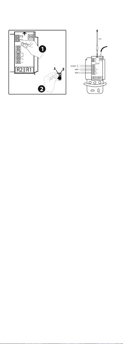 2) üzerindeki A veya B düğmesini alıcı üzerindeki LED yanıp sönmeye