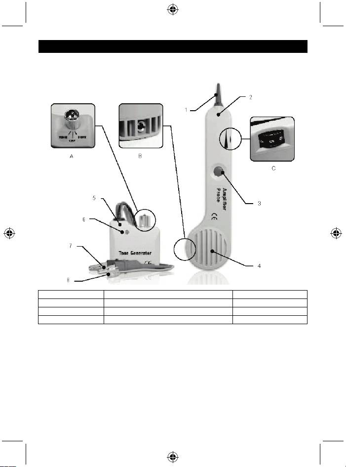 2. Zesilovací sonda 6. DUÁLNÍ BAREVNÁ LED B. Telefonní zástrčka