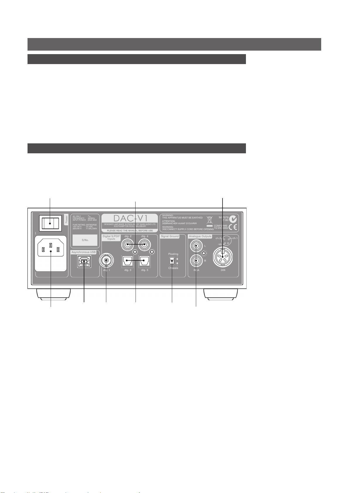 • Check that the mains supply specified on the DAC-V1 rear panel is appropriate for your territory.