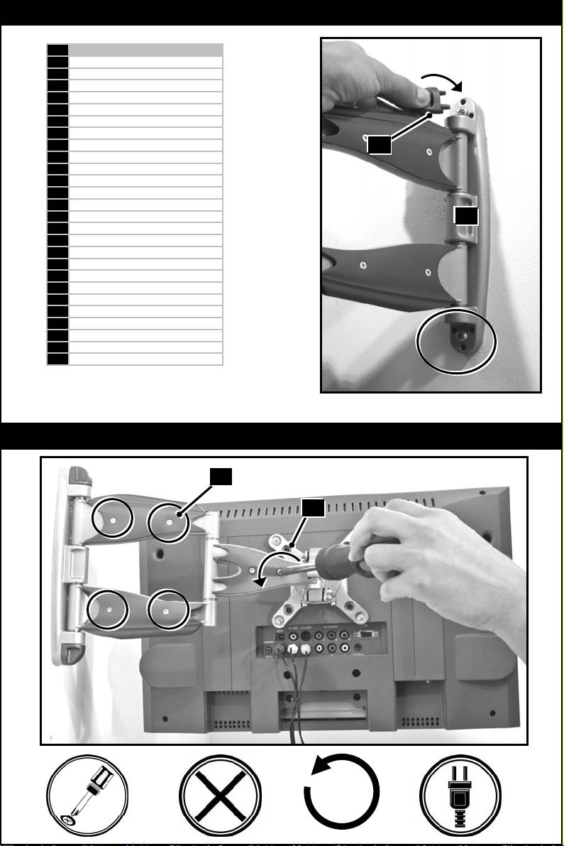 WHEN INSTALLING FLAT PANEL TV DO NOT OVER TIGHTEN SCREWS