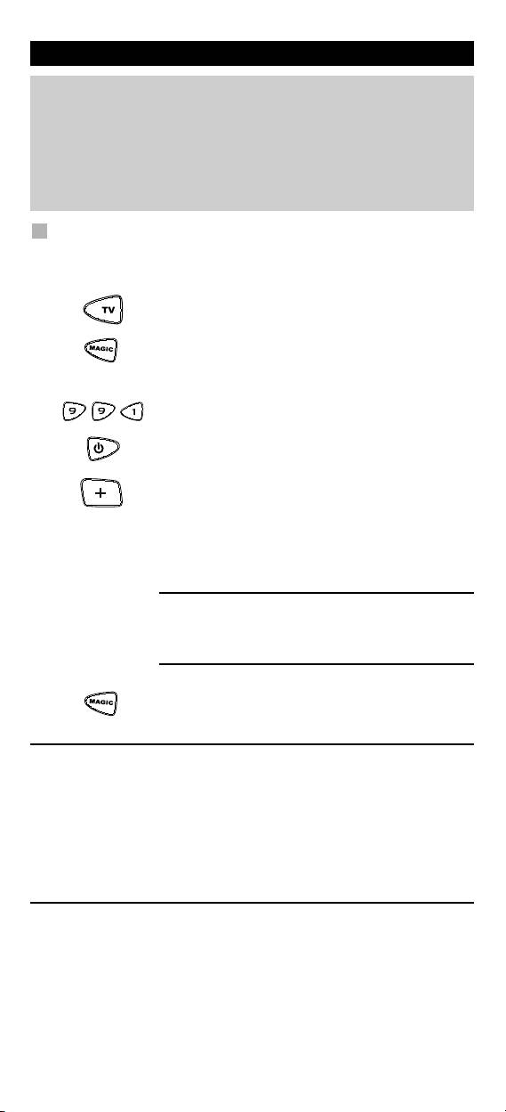 Eksempel: For "Reset" af TV-knappen til den oprindelige funktion, tryk: