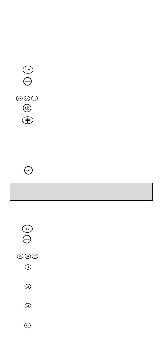 7 Så snart TV apparatet slår seg av trykker du MAGIC for å