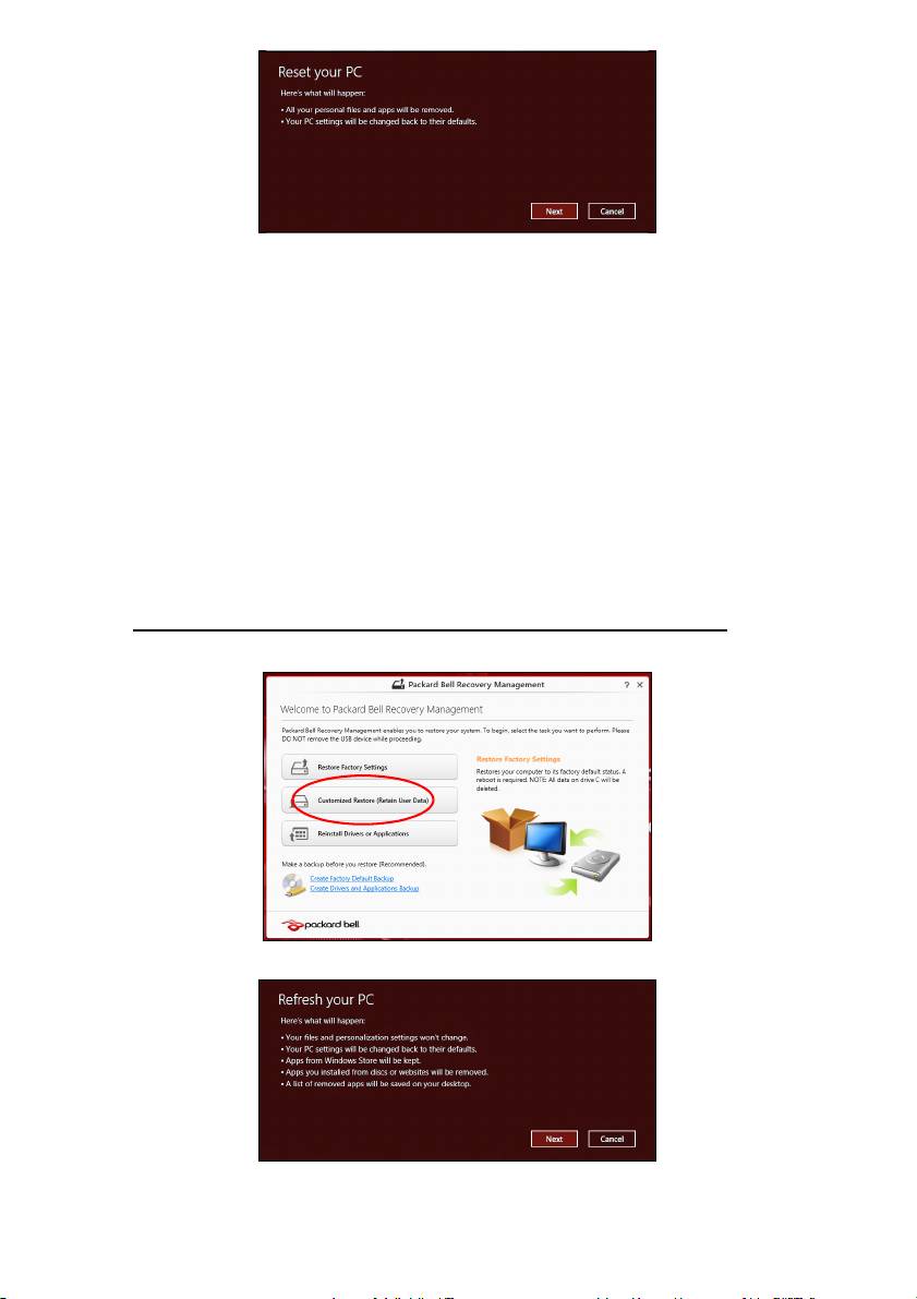 Tilpasset gendannelse med Packard Bell Recovery Management